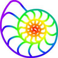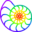 logo is a rainbow coloured representation of a Chambered or Pearly